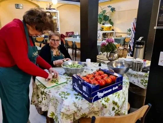 Hver uge samles deltagerne til fællesspisning med hjemmelavede måltider bestående af en varm ret og dessert. Måltidet fungerer som et fast samlingspunkt og danner rammen om det sociale samvær.