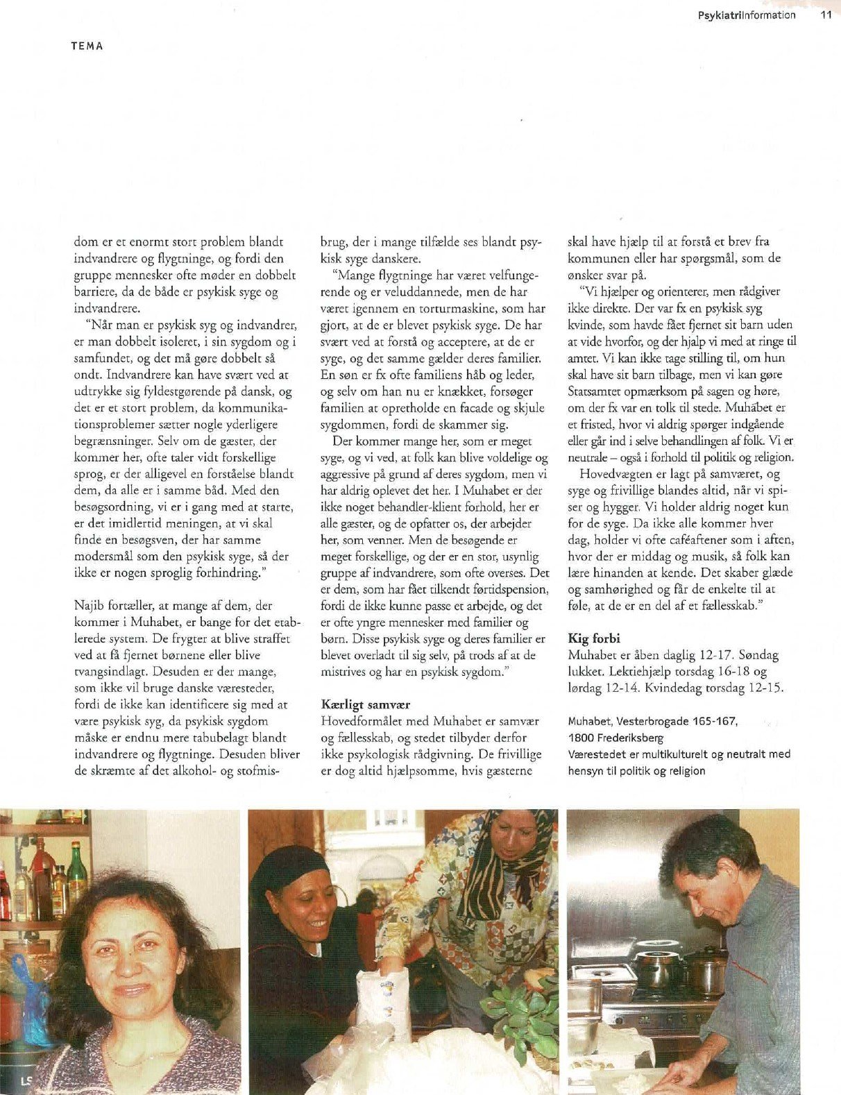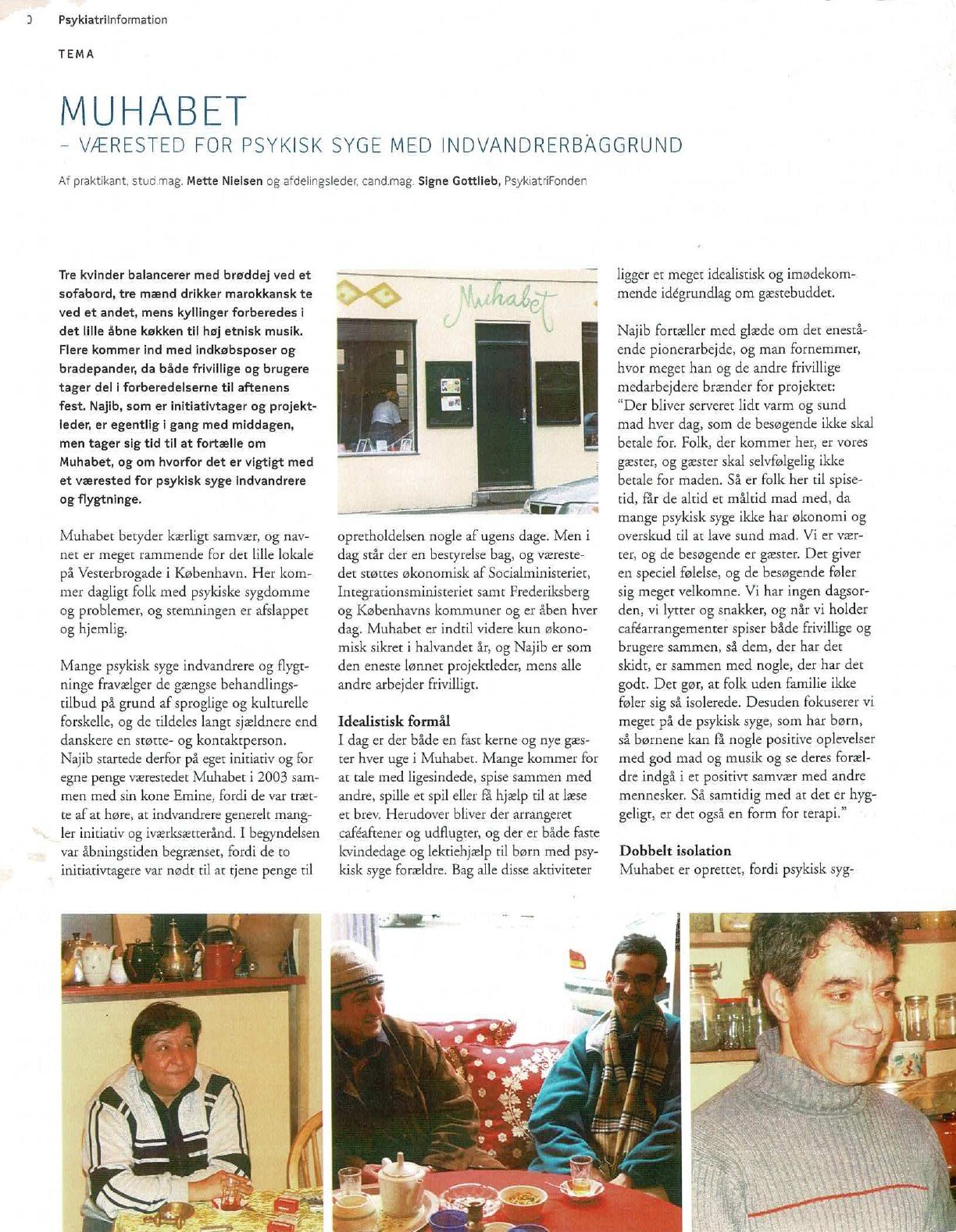 “For 18 år siden blev jeg inviteret inden for i Muhabet på Vesterbrogade – det var lige startet og havde kun åbent to dage om ugen, hvor der blev serveret suppe og en kop tyrkisk te. Jeg blev fanget af den varme og rummelige atmosfære, som vi siden har forsøgt at fastholde. Vi kaldte Muhabet for ’en oase i storbyen’, hvor billedet symboliserer, at livet kan være en lang ørkenvandring for nogen mennesker, der kommer langvejs fra, og at man kan have brug for et sted, hvor man for en stund kan slappe af, få stillet sin tørst, og møde andre med respekt og ligeværdighed.”